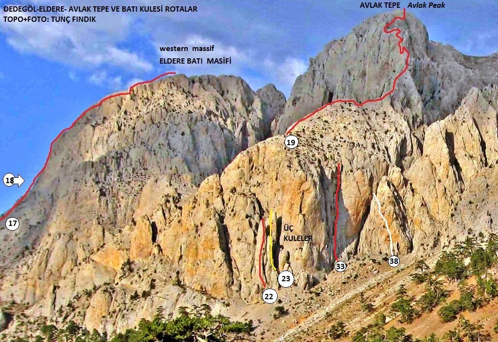 Западный массив, Avlak Tepe, Eldere Главный массив, Парус*, Желтая Башня.