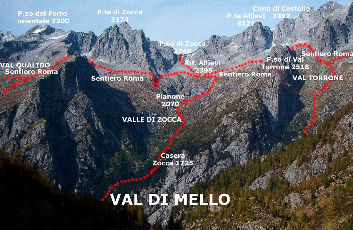 Валь-ди-Мелло - это небольшая долина без подъездных путей, расположенная в конце Val Masino. Доступ на машине в долину запрещен.