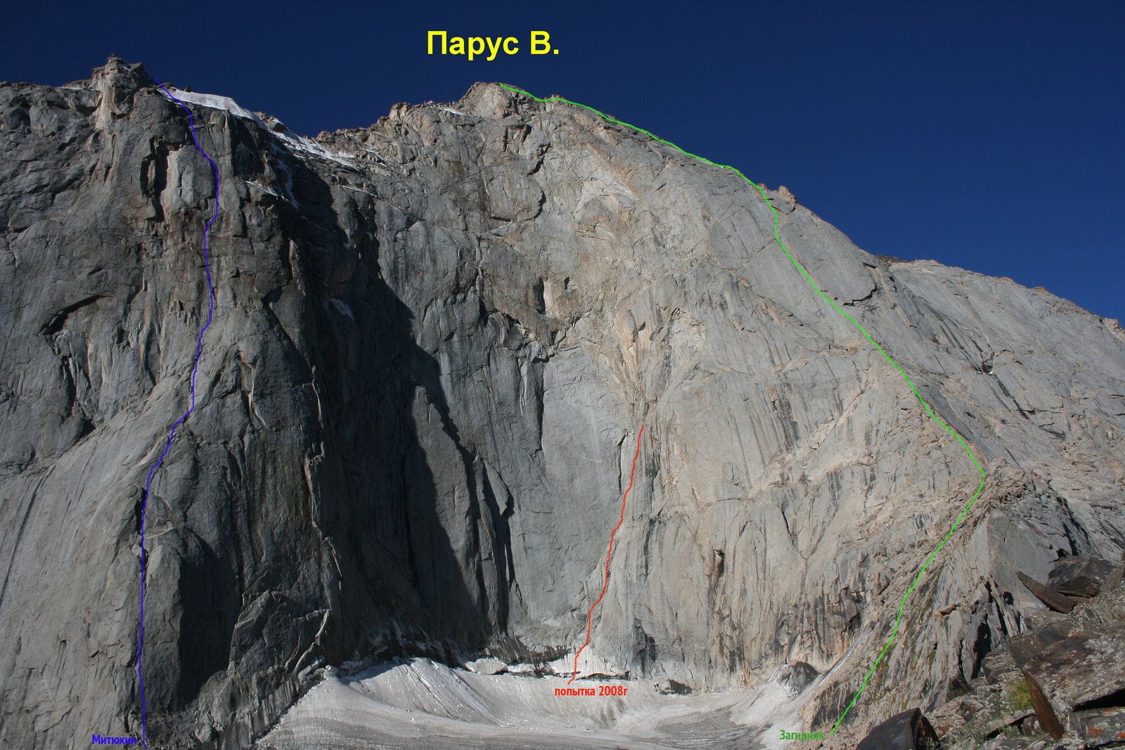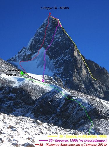 Итальянцы в 1990г. пролезли на В. Парус красивую линию и даже издали об этом книгу. Нитку маршрута постараюсь найти.