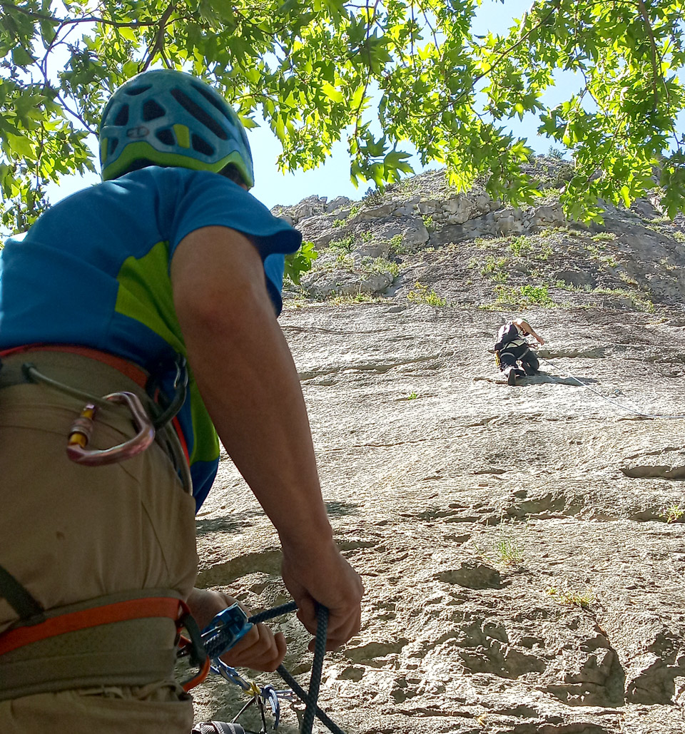Здесь же Кленов оборудовал учебный сектор, идеально подходящий для работы с веревкой, обучению страховке и спускам. Есть маршрутики высотой 8м для этих же целей.