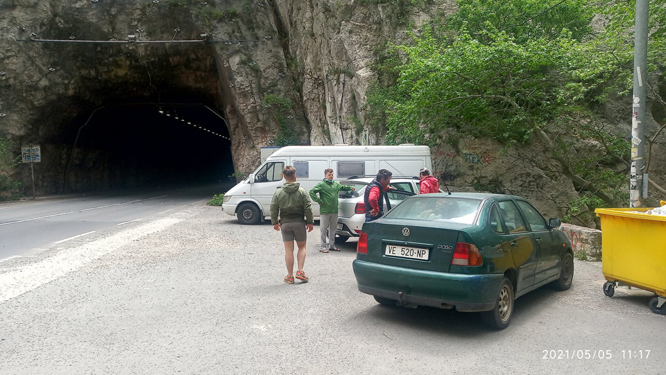 Итак, начинаем знакомство со скалами. Машина паркуется между двух тоннелей. Стоянка вместительная, есть информационные баннеры и мусорные контейнеры.