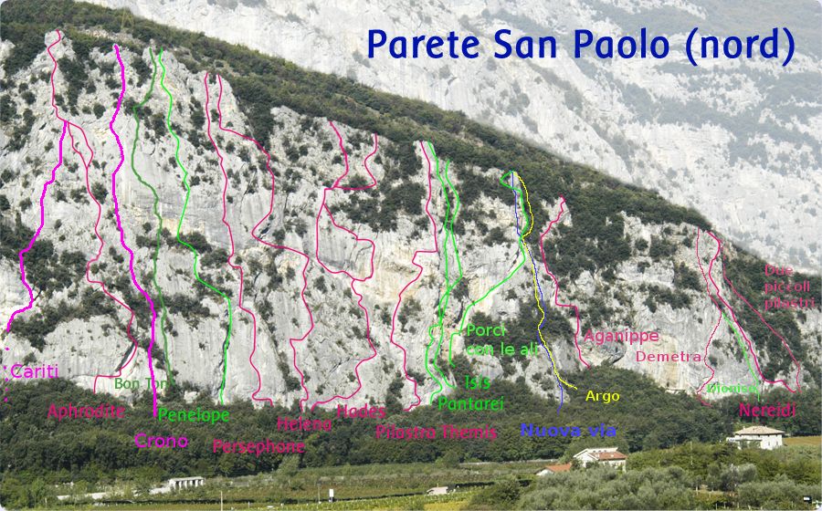 Стена San Paolo расположена к северу от Monte Castelo и Monte Colodri, возвышающихся над городком Арко.