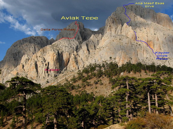 "Veli Demirpiton", 150м, 3 веревки, V+ самый простой маршрут, в левой части массива (2Б к.т.)