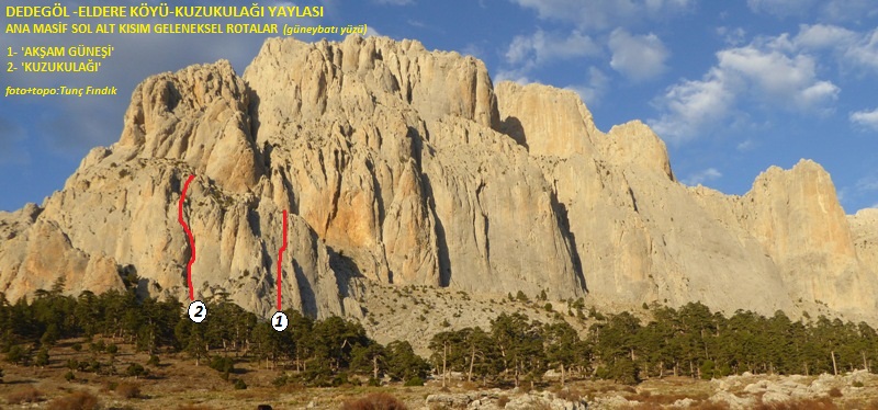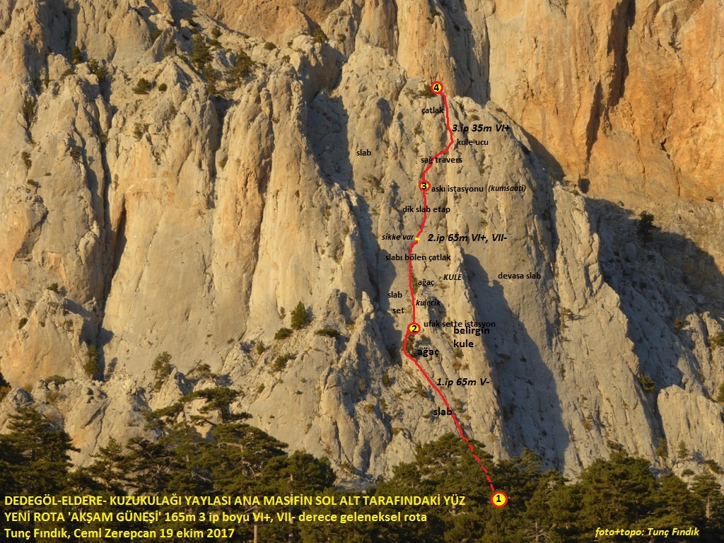 "Kurt Yolu" (Волчья тропа)(4 pitches, 200 m, III+, IV+) - короткое разминочное восхождение, (2А к.т.)