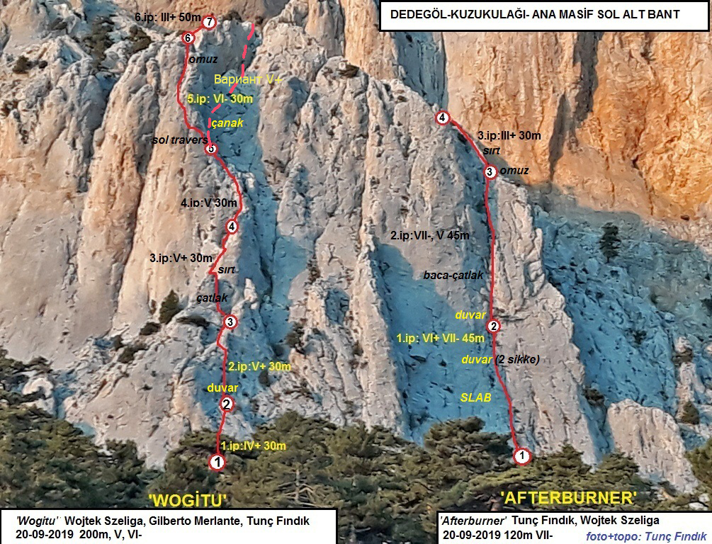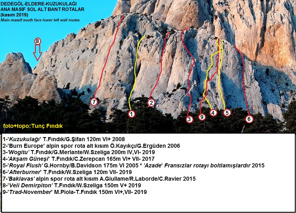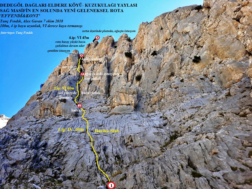 ‘ Kuzukulağı’ "Щавель"(3 pitches, 120 m, VI+) - приятный маршрут по камину с хорошей промежуточной страховкой слева от болтового мультипитча Burn Europe