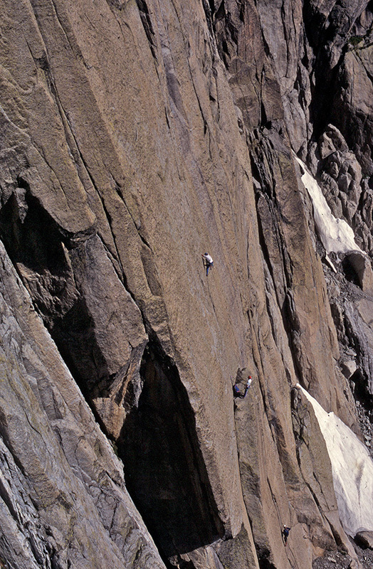 - Вы употребили слово «клише» возможно потому, что хотели сказать, что «модерновые» маршруты в массиве Монблана переполнены болтами? Однако подавляющее (молчаливое) большинство альпинистов повторяющих мои маршруты, считают, что болтов слишком мало, особенно на компактных плитах, по которым проложены линии 80-х годов, где их отсутствие может привести к глубокому и опасному для жизни падению.